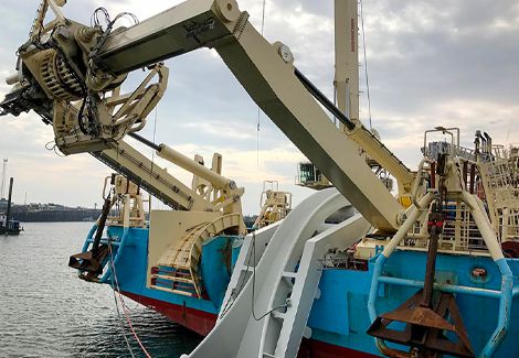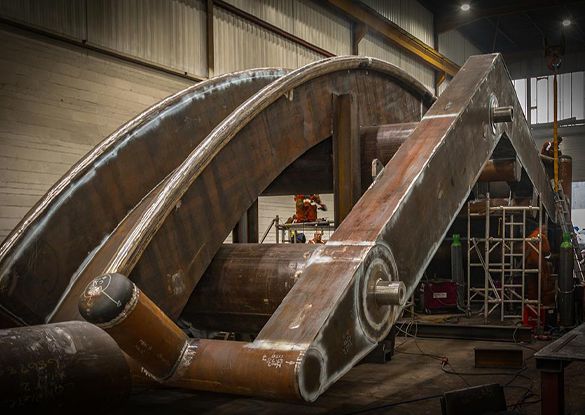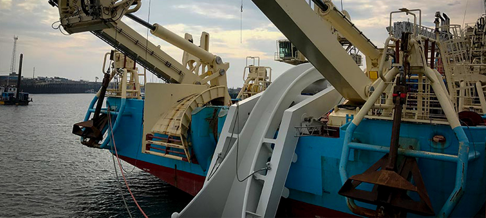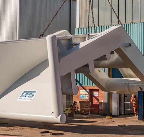 In-order-for our client, DEEPOCEAN to deliver the cable from carousel to seabed, the leading edge of the chute was to be deployed part-submerged while on location due to the MBR of the cable. This presented the designers with some challenges as the vessel could not sail while the chute was in the water. Thus, they needed to design the chute so it could be removed while sailing to and from the field. Therefore, a complex hinge arrangement was designed to allow the chute to be lifted from the water during transit. This hinge encompassed high tolerance machined components which is not easy to achieve on large fabrications that are fixed to a ship's deck.